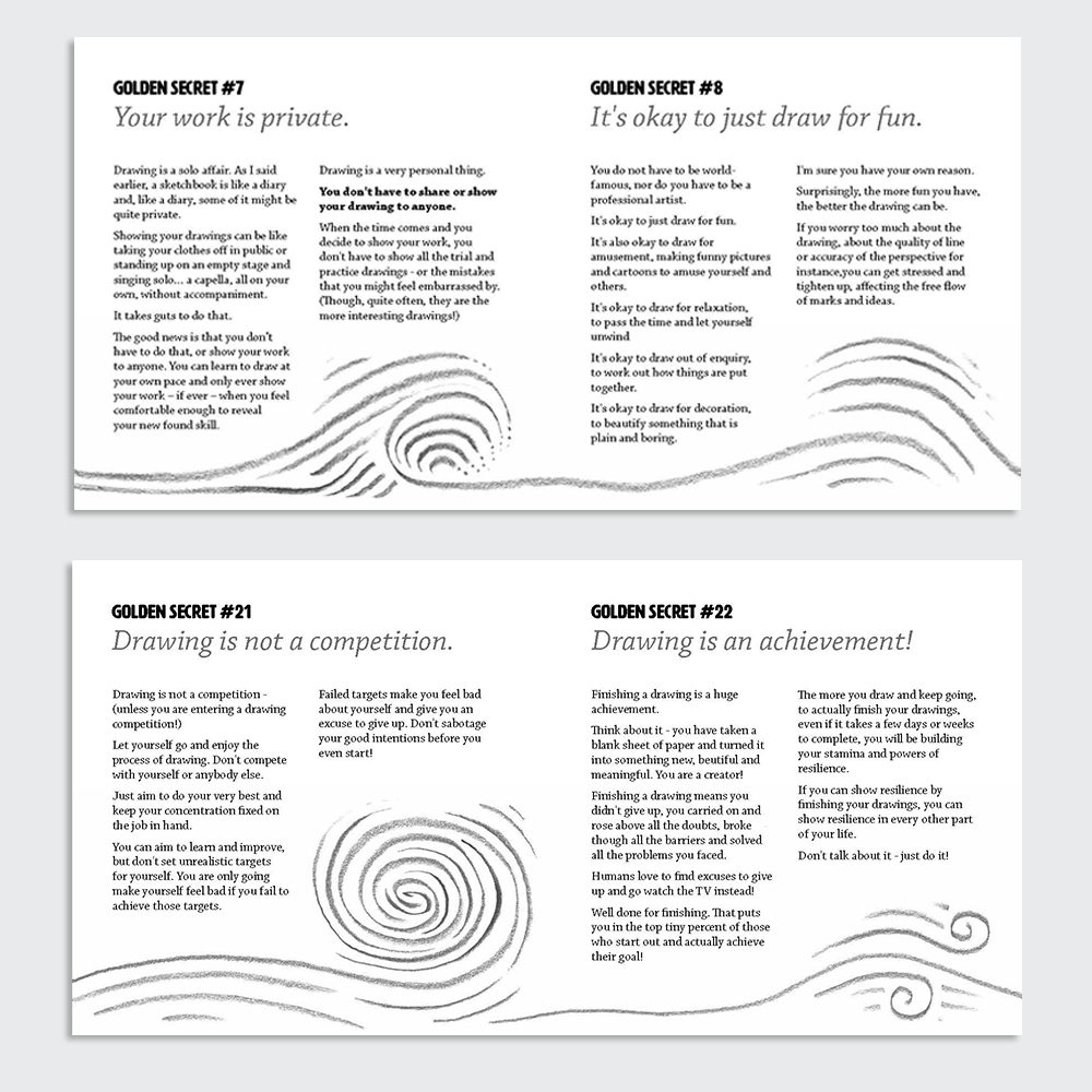 This book will not teach you how to draw. There are other teachers, books and videos for that. This book is a sort of comfort blanket for beginners and confident artists alike. This book aims to knock down the mental barriers and excuses that are stopping you from picking up a pencil and drawing today.